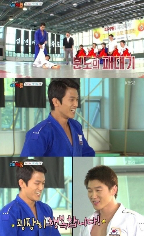 이날 멤버들은 이원희와 조준호의 등장에 열띤 환호를 보내며 시범을 보여달라고 했다.