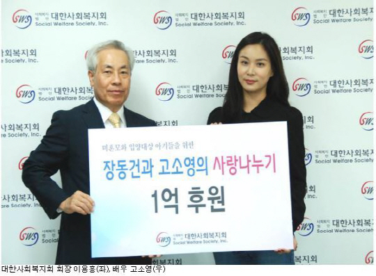 8일 대한사회복지회 측은 장동건·고소영 부부가 미혼모와 입양 대상 아기들을 위해 기부금 1억원을 대한사회복지회에 전달했다고 전했다.