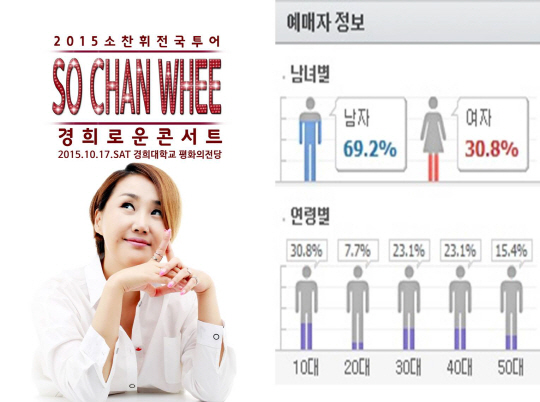 소찬휘가 공개한 이미지에는 남여 비율이 7:3으로 나와있으며 10대부터 50대까지의 나이대별 관객 점유율이 10대가 30%이상이며 20대와 50대까지는 고른 분포를 보이고 있다. 현재 VIP 잔여석 일부를 제외하면 이미 매진 상태다.