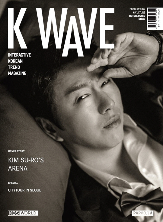 김수로는 외교부가 전세계 117국에 배포하고 KBS와 ㈜케이컬처(대표 최용호)가 공동으로 제작 하고 있는 한류매거진 케이웨이브 (KWAVE)와 함께 한,영판 10월호 커버와 화보를 선보였다.