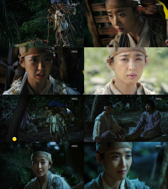 이날 방송에서는 '남장 여자'차림으로 전국을 돌아다니는 젓갈장수 보부상 개똥이(김민정)가 반 시체상태로 버려졌던 길소개(유오성)를 살리는 모습이 담겼다. 젓갈동이를 등에 진 개똥이는 야산에 버려져 의식을 잃고 누워있는 길소개의 손가락을 자르려는 거지 떼들을 도깨비불로 ?아냈던 터. 거지들이 사라지고 나서 길소개를 살펴본 개똥이가 그냥 돌아서 가려고 하자 길소개는 개똥이의 발목을 잡았다.