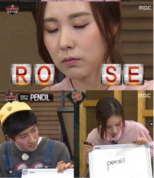 이후 간미연은 광희와 영어 문제 대결에 나섰고, 이번에는 '연필(pencil)'을 'pensil'이라고 써 웃음을 자아냈다.