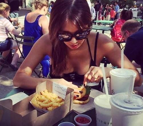 공개된 사진 속 김빈우는 테이블에 앉아 선글라스를 쓴 채 햄버거를 먹고 있는 모습. 특히 김빈우는 가슴라인이 드러난 의상을 입고 볼륨몸매를 과시해 시선을 모은다.