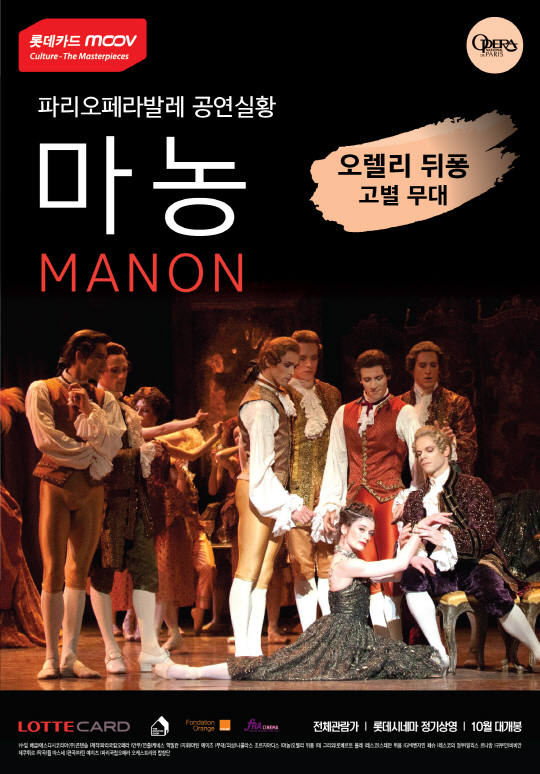 프랑스 작가 아베 프레보의 소설 '기사 데 그리외와 마농 레스코의 이야기'를 원작으로 한 '마농'은 영국 안무가 케네스 맥밀란의 작품으로 1973년 런던에서 초연됐고, 1990년 파리오페라발레단의 레퍼토리로 채택됐다. 특히 이번 프로덕션은 프랑스 최고의 에투알(수석 무용수) 오렐리 뒤퐁의 고별 무대로, 전설적인 발레리나의 명연기를 마지막으로 볼 수 있는 기회다.