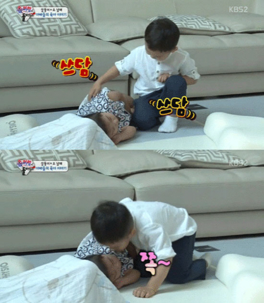 하지만 설아는 계속 잠투정을 했고, 먼저 깬 민국이 "설아야 울지마"라고 달래며 뽀뽀를 했다. 민국이는 설아에게 쓰담쓰담을 하는가 하면, 뽀뽀를 하는 등 다정한 오빠의 모습을 보여 눈길을 끌었다. <스포츠조선닷컴>