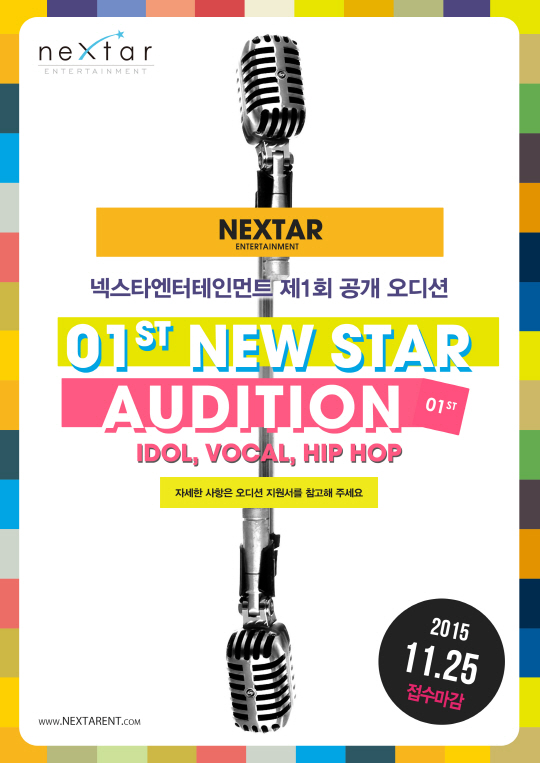오디션 접수는 11월 25일까지다. 서류심사 합격자에 한해 1차 오디션의 기회가 주어지며 최종 합격자들에게는 넥스타엔터테인먼트에서 데뷔를 위한 트레이닝 과정을 받게 된다.