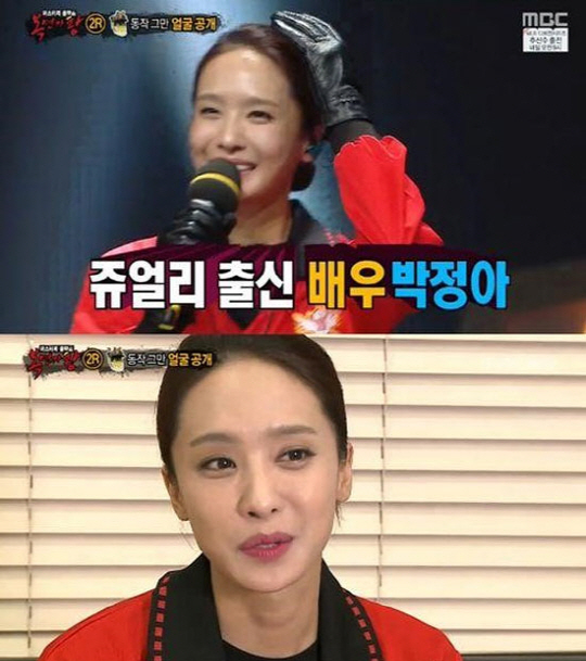이에 가면을 벗은 동작그만 정체는 그룹 쥬얼리 출신 배우 박정아였다. 박정아의 등장에 객석은 큰 환호가 터져나왔고, 박정아는 "너무 오랜만에 노래로 인사드렸다. 반갑다"고 말했다.