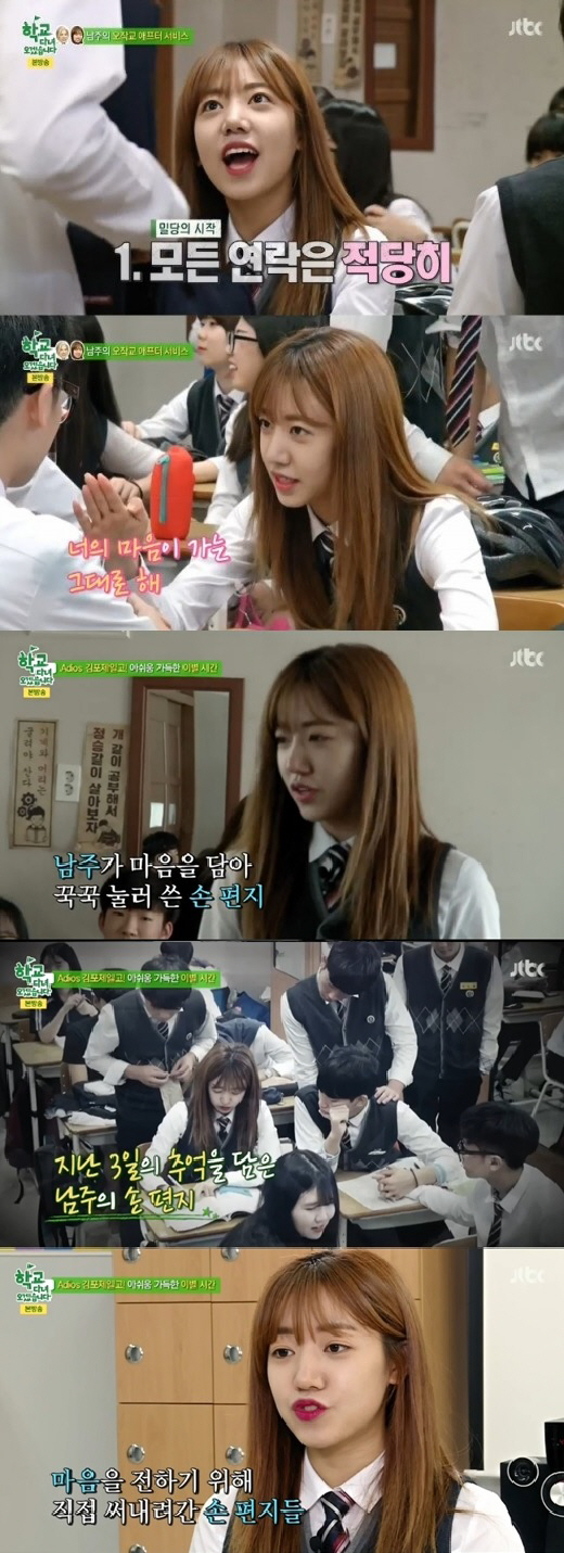 반 친구들의 '진짜 친구'로서 '진짜 학생'으로서 최선을 다한 남주이기에 이별의 순간은 더 아쉬웠다. 특히 남주는 "손편지가 가장 마음을 잘 전달할 수 있는 수단이라고 생각했다"3일간 함께 지낸 34명의 반 친구들 한명 한명을 위해 직접 손편지를 써와 친구들을 감동시켰다. 남주는 아쉬운 마음을 가득 담아 친구들의 이름을 부르며 손편지를 나눠줬다.