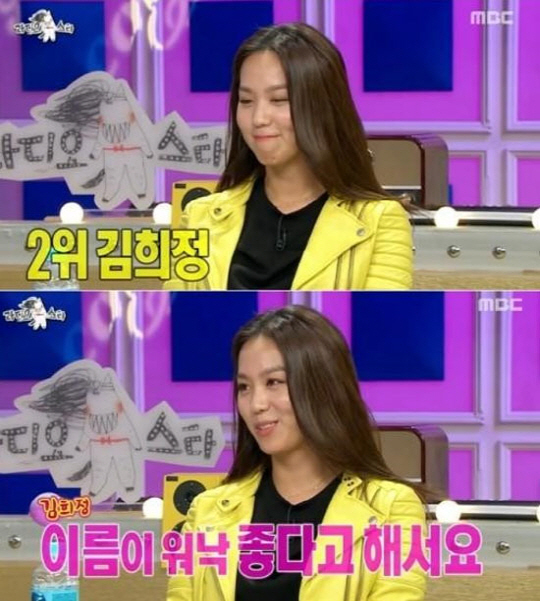 이날 김희정은 자신의 이름이 많지 않느냐는 질문에 "그래서 이름을 바꿀까 생각했는데 이름이 워낙 좋다고 하더라"고 전했다. 실제로 포털 사이트에 검색하자 '김희정' 동명이인이 많이 검색됐다.