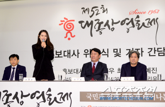 14일 오후 서울 중구 남대문로 밀레니엄 서울 힐튼 호텔에서 제52회 대종상 영화제 홍보대사 위촉식 및 기자간담회가 열렸다. 홍보대사에 위촉된 배우 손예진이 포부를 밝히고 있다. 송정헌 기자 songs@sportschosun.com/2015.10.14 |