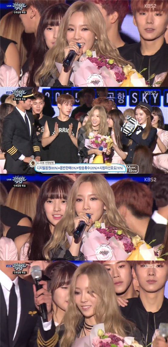 걸그룹 소녀시대 태연이 '뮤직뱅크'에서 1위를 차지했다.