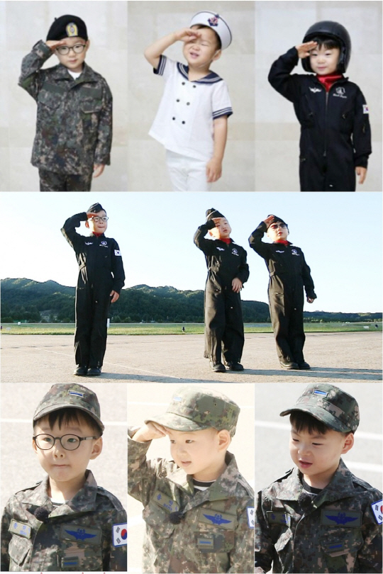 '슈퍼맨' 삼둥이, 공군 체험 도전…꼬마 군인도 귀여워