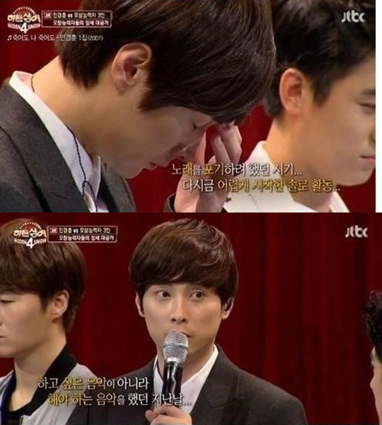 이어 민경훈은 "전 소속사의 권유로 다시 솔로 앨범을 내게 됐다. 그때 혼자 하는 게 처음이었는데, 항상 내가 왼쪽을 보면"이라며 말을 잇지 못하고 눈물을 흘렸다. 민경훈은 "그렇게 (멤버들이) 있어야 되는데 어느 순간 보니까 혼자 남아있는 거다. 이겨내지 못했다. 우선 집 밖을 나가지 않았고, 막 살도 많이 쪘다"라고 회상했다.