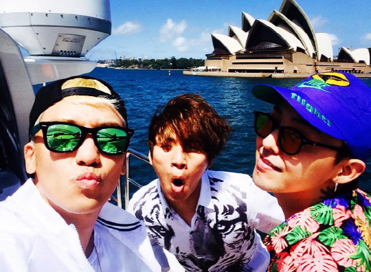 [스포츠조선 이유나 기자] 오스트레일리아 시드니 공연을 마친 빅뱅 지드래곤, 대성, 승리가 관광객 모드로 오페라 하우스를 배경의 인증샷을 촬영했다.
