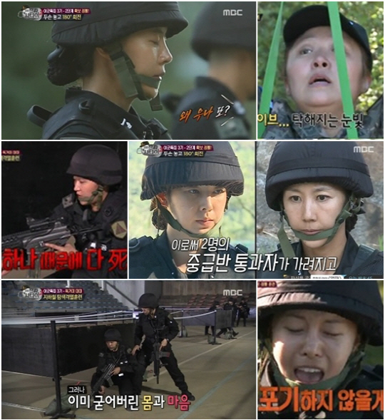김현숙, 유선, 전미라, 박규리, 한그루, 한채아 등의 6인은 남다른 각오로 훈련에 돌입했지만, 상상이상의 훈련 수위로 인해 '멘붕'에 빠졌다. 외나무 다리, 수평 대들보 넘기, 경사판 오르기, 수평봉, 외줄타기 오르기 등 혹독한 훈련이 이어졌고, '현숙이 형'으로 불리던 에이스 김현숙 마저 눈물을 쏟기도 했다.