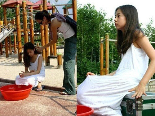 극 중 청각장애인 소녀 역을 맡은 안소희는 검은 색 생머리를 길게 늘어뜨리고 하얀색 원피스를 입은 앳된 모습을 띄고 있다.