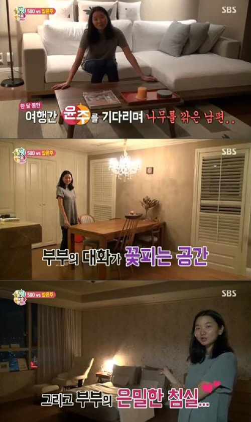 특히 장윤주는 소파 앞에 놓인 테이블에 대해 "내가 한 달 동안 탄자니아에 가 있을 때 남편이 날 생각하며 만든 것"이라고 자랑해 부러움을 샀다.