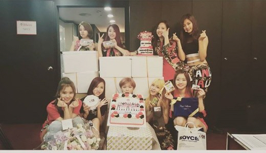 공개된 사진에는 팬들에게 선물 받은 케이크, 꽃바구니, 도시락 등을 들고 환하게 미소 짓고 있는 트와이스 멤버들의 모습이 담겨있다.