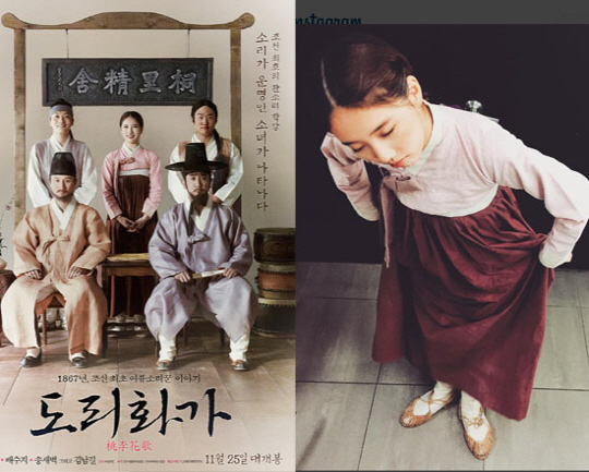 특히 영화 '도리화가'에서 조선 최초의 여류소리꾼 진채선으로 분한 수지는 한복을 입은 채 인사를 하는 포즈를 취하고 있어 눈길을 끈다.