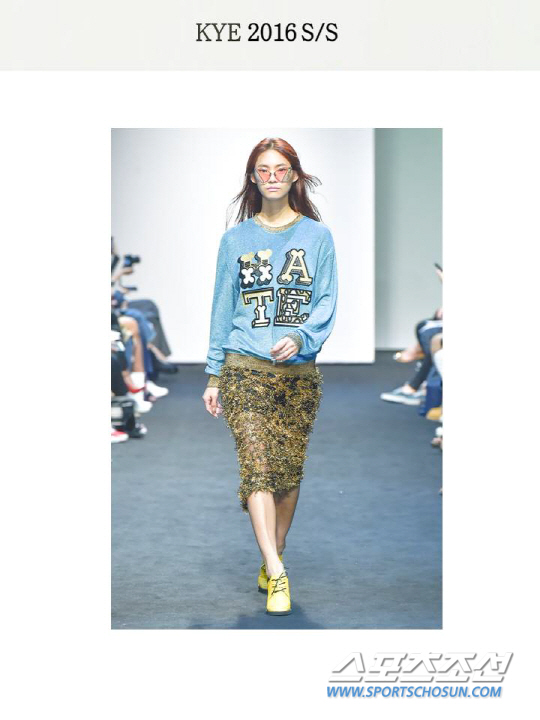 무엇보다 이 니트 속 독특한 HATE 자수! 눈에 띄네요. 이토록 가볍게 HATE를 그린 게한희 디자이너, 가볍게 타인을 상처입히는 무책임을 조롱하고 있는 것은 아닐까요?