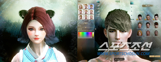 아키에이지의 커스터마이징 시스템은 눈물샘 넓이, 콧볼 넓이, 길이 등 세세한 부분까지 유저가 직접 조절할 수 있다. 게임 서비스 초기부터 다양한 연예인 얼굴을 만들 수 있어 화제가 되었는데, 지난 23일(수) 업데이트에는 종족별 헤어 스타일 총 18개와 트랜드를 반영해 투톤 염색 기능을 추가했다.