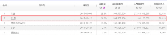 '더 폰'은 22일 개봉작 예매율 1위에 오르며 '마션'과의 예매 격차를 분단위로 줄이면서 바짝 추격하고 있다.