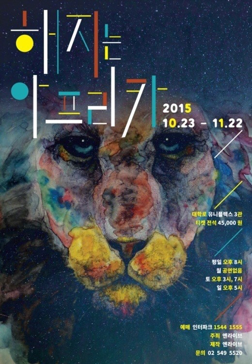 한편 음악인형극 '해지는 아프리카' 는 예매사이트 인터파크를 통해 예매가 가능하다. 전석 4만5천원이며 정부가 지원하는 1+1 혜택을 받을수 있다. 미취학아동은 입장이 불가하다. 문의 02-549-5520. 이정혁 기자 jjangga@sportschosun.com