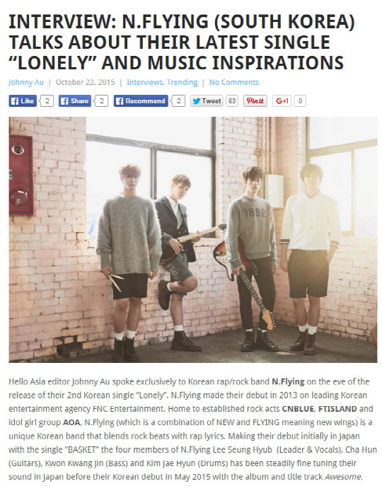 특히 홍콩, 싱가포르, 대만 등 아시아 음악과 문화를 보도하는 호주 매체 헬로우아시아(Helloasia)는 인터뷰를 통해 엔플라잉을 집중적으로 소개했다. 헬로우아시아는 "랩과 록을 결합한 한국 고유의 밴드"라고 엔플라잉을 소개하며 "데뷔 전부터 일본에서 연주 실력을 꾸준히 갈고 닦았다"고 언급했다. 또 엔플라잉의 음악적인 영감에 대해 집중 보도하며 "호주에서도 엔플라잉의 공연을 보기 원한다"고 해외에서의 성장 가능성을 점쳤다.