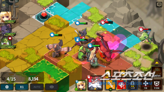 또 하나는 캐릭터 행동 시의 순서를 정하는 것이다. '슈퍼판타지워'에서는 자기 턴에는 정해진 순서대로 캐릭터를 조작해야 한다. 물론, 유저가 직접 움직이고 싶은 캐릭터부터 움직이는 게 훨씬 전략적이겠지만, 이러면 생각할 것도 많아지고 조작도 복잡해진다고 판단했다. 익숙한 유저라면 괜찮겠지만, 대다수의 유저들은 이를 어려워할 것이다. 그래서 캐릭터 순서를 고정해두고, 그 안에서 전략을 쓸 수 있도록 의도했다. 캐릭터 순서는 파티 구성 때의 순서이므로, 여기서 조금 고민할 수 있도록 했다. 이에 대한 유저들의 피드백도 많았지만, 모바일에는 이게 적합하다고 판단했다.