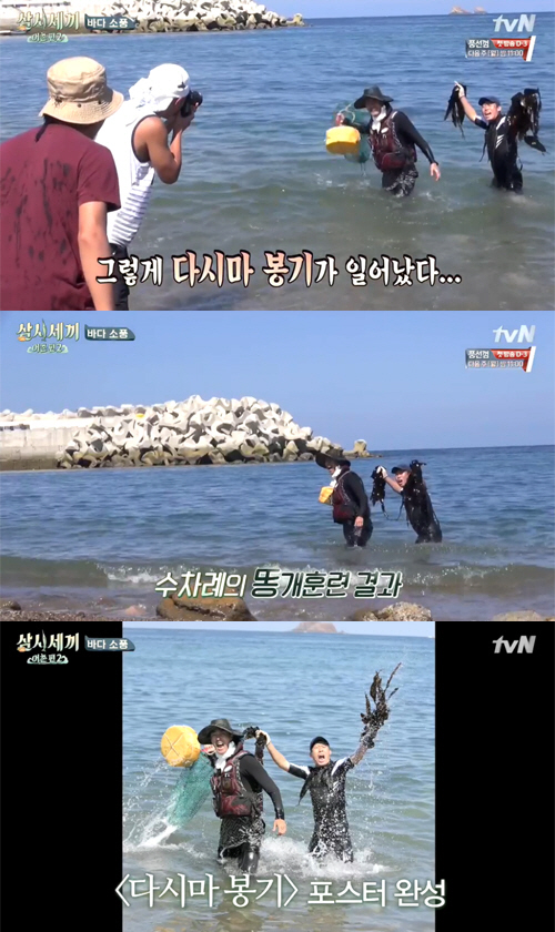 나영석 PD는 "물속에서 유해진이 다시마를 들고 특수부대처럼 뜨아, 차승원이 어망을 들고 뜨아하는 콘셉트로 하나 찍자"고 말했다.