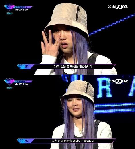 앞서 22명의 래퍼 가운데 20위 안에 들지 못한 멤버는 프로그램에서 하차해야 했기에 순위 발표에 모두의 관심이 쏠렸고 킴이 탈락의 고배를 마셨다.