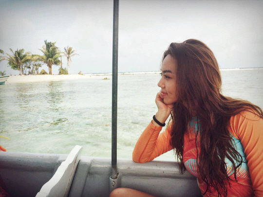 공개된 사진 속 김희정은 주황색 래쉬가드를 입고 조각 같은 미모를 과시하고 있다. 특히 그는 몸매가 드러나는 래쉬가드로 굴곡진 몸매를 노출해 시선을 끈다.