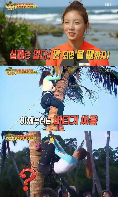 이날 유승옥은 "평소에 운동을 열심히 해서 허벅지 힘 하나는 자신 있다"며 코코넛 따기에 도전했다.