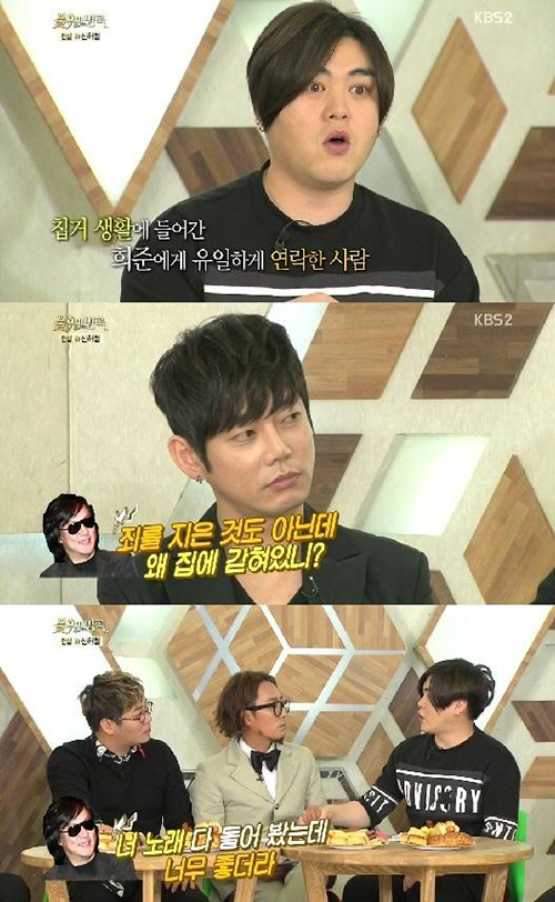 문희준은 "과거 앨범 작업을 하면서 9개월 동안 집에서만 갇혀 있던 적이 있다. 그때 연락해준 유일한 사람이었다"며 "신해철 선배가 '너 죄를 지은 것도 아닌데 왜 그렇게 갇혀 있느냐. 나와라'라고 해주셨다"고 말했다.