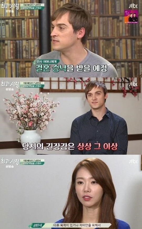 송민서 어머니는 기욤 외모를 칭찬하면서도 "난 사윗감으로 방송인을 원치 않는다. 방송을 안 할 때는 어떻게 먹고 살건지 궁금하다"고 말하며 현실적으로 접근했다.