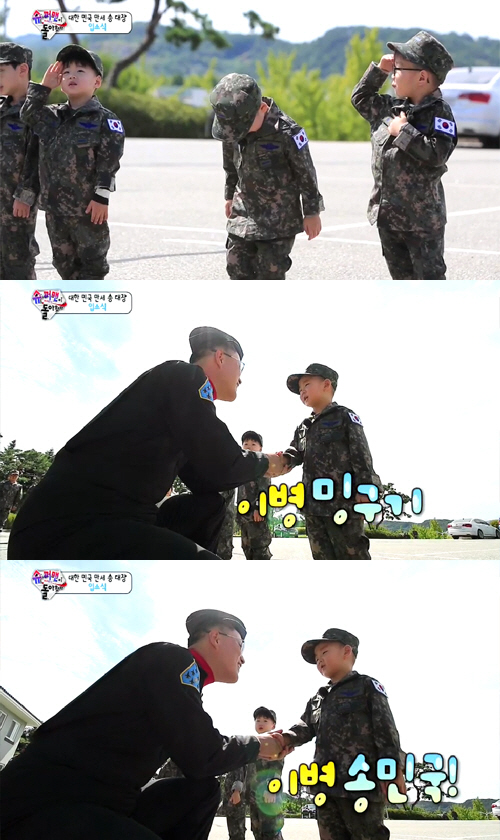 이에 전대장은 "이병 송민국이라고 해야한다"고 알려줬고, 민국이는 다시 "이병 송민국"이라고 큰소리로 외쳐 눈길을 끌었다.