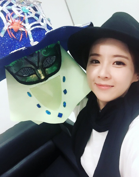 공개된 사진 속 은가은은 '복면가왕'에서 착용한 '꼬마마법사 아브라카다브라' 복면을 손에 들고 미소를 지으며 카메라를 응시하고 있다.