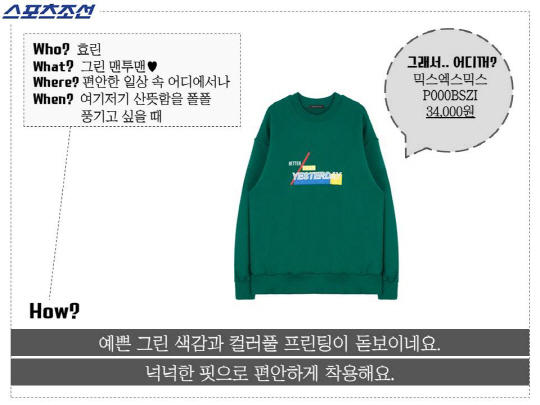 [어디꺼] '언프리티' 효린의 그린 색감예쁜 프린팅 맨투맨?
