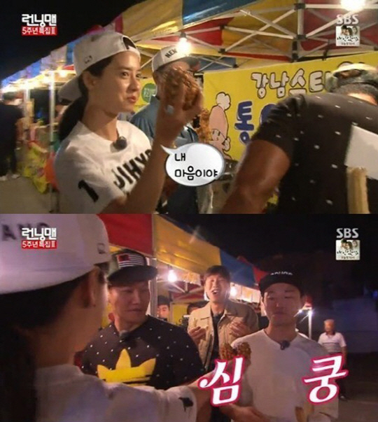 런닝맨 송지효 개리, 5주년은 사랑...하트 과자 선물 "내 마음이야"