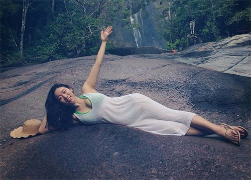 공개된 사진 속 이미도는 폭포를 뒤로하고 돌 위에 누워 환한 얼굴로 카메라를 응시하고 있다. 특히 이미도는 비키니 위에 화이트 원피스를 입은 채 볼륨감 넘치는 S라인 몸매를 과시해 시선을 모은다.