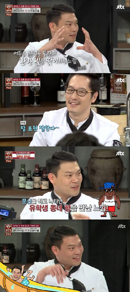 여기서 끝나지 않았다. 이찬오는 홍석천의 '입에 불레리나'를 먹어본 후 "동네 형을 만났는데 그 형이 유학갔다와서 문신을 하고 나타난 느낌"이다며 친숙한 재료로 색다른 맛을 낸 요리를 평가해 좌중을 폭소케 했다.
