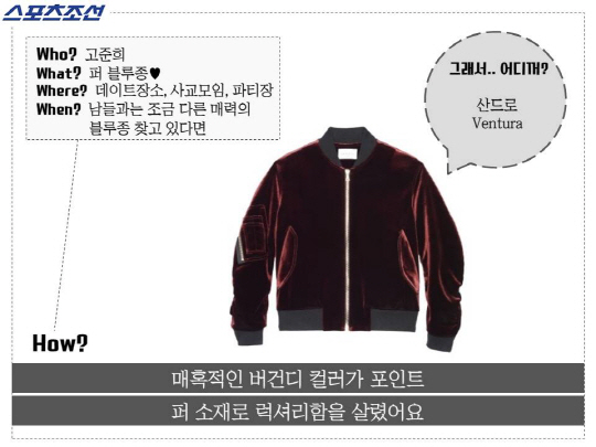 #어디꺼 #스포츠조선 #그녀는예뻤다 #고준희 #블루종 #그녀의_블루종은_남다르다 #와인과_퍼의_럭셔리한_조합 #산드로