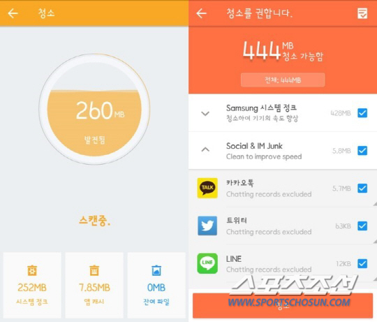 하지만 "나는 매번 들어가서 정리하는 게 귀찮다!"하는 분들도 있을 겁니다. 이런 분들을 위해 터치 한 번으로 휴지통 정리, 시스템 캐시, 웹 캐시 등 불필요한 파일들을 정리해주는 앱들도 있습니다. 대표적으로 Clean Master(https://play.google.com/store/apps/details?hl=ko&id=com.cleanmaster.mguard), 통화/메시지 기록 등을 지워주는 History Eraser(https://play.google.com/store/apps/details?hl=ko&id=mobi.infolife.eraser), 360 Security Lite(https://play.google.com/store/apps/details?id=com.qihoo.security.lite&hl=ko) 등이 있습니다.