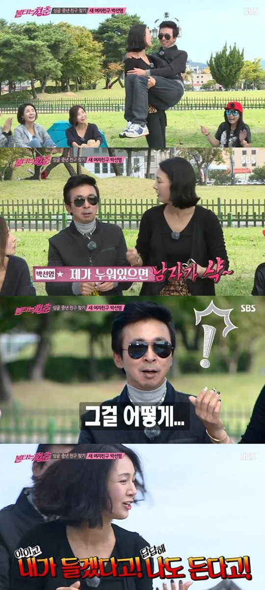 불타는 청춘 박선영이 김국진을 번쩍 안아올리며 압도적인 힘을 과시했다.
