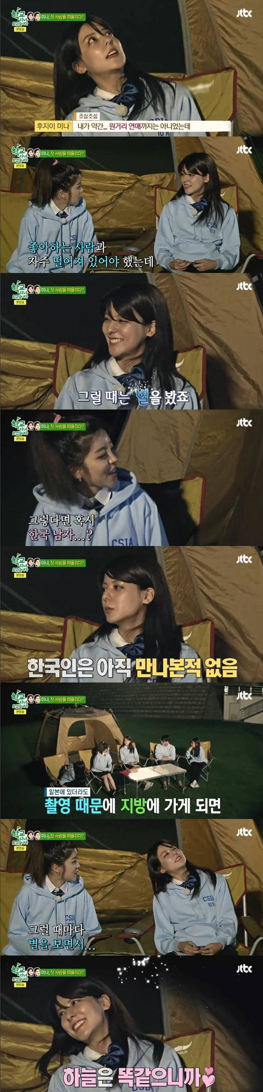 후지이 미나는 "내가 원거리 연애까지는 아닌데 일본과 한국을 오가다 보면 좋아하는 사람과 떨어져 있을 때가 있었다. 그럴 때는 별을 봤다"고 얘기했다.