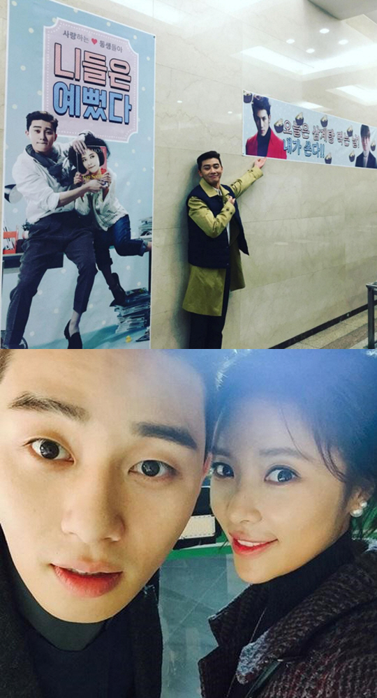 사진 속 현수막에는 "사랑하는 동생들아 니들은 예뻤다"라는 글귀가 담겨 있다. '킬미힐미'를 통해 황정음 박서준과 함께 호흡을 맞췄던 지성이 이들을 위해 밥차를 선물한 것. 박서준이 가리킨 현수막에는 "오늘은 삼계탕 먹는날! 내가 쏜다"라는 글귀가 쓰여있다. 박서준은 배우 지성에 "형님 사랑합니다"라며 마음을 전했다.