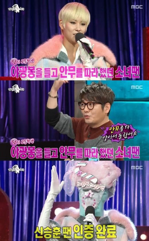 이날 복면을 쓴 '솜사탕'이 신승훈의 노래를 불러 궁금증을 자아냈다. 솜사탕은 "신승훈과 친한 편이냐"는 질문에 "건너 건너 안다"고 말했다.