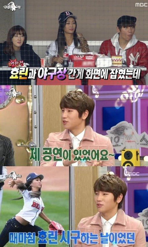 이날 케이윌은 "연예인과 교제한 적 있냐"는 질문에 "없다"고 말했다. 그러자 규현은 케이윌이 최근 야구장에서 효린과 포착된 것을 언급하며 열애설 이야기했다.