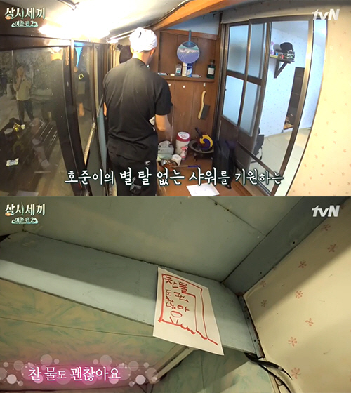 이에 손호준은 차승원이 추가로 만들어 준 샤워 무탈 기원 부적 '찬물도 괜찮아요'를 벽에 붙여놔 웃음을 자아냈다.