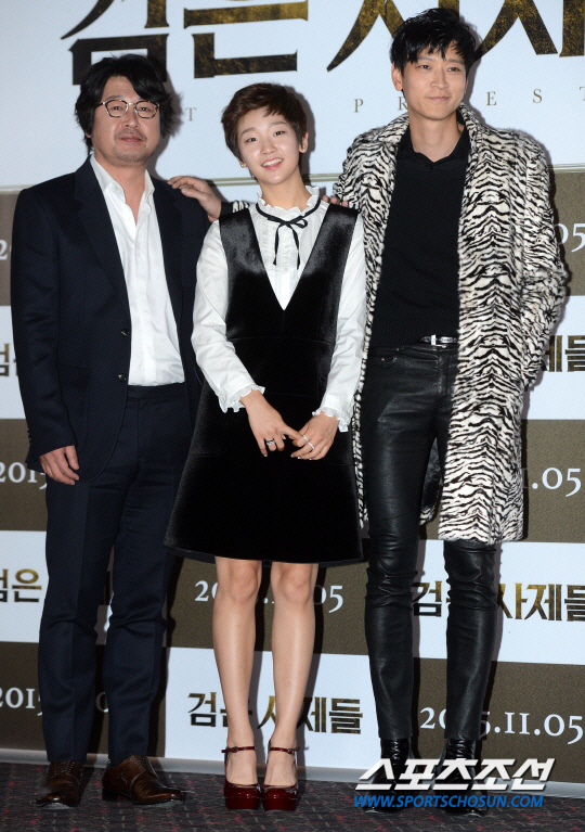 검은 사제들' 언론시사회에서 김윤석은 강동원의 외모에 대해 "칭찬밖에 더할 게 있겠냐"며 "박소담에게 물어보는 게 낫겠다"고 입담을 뽐냈다.